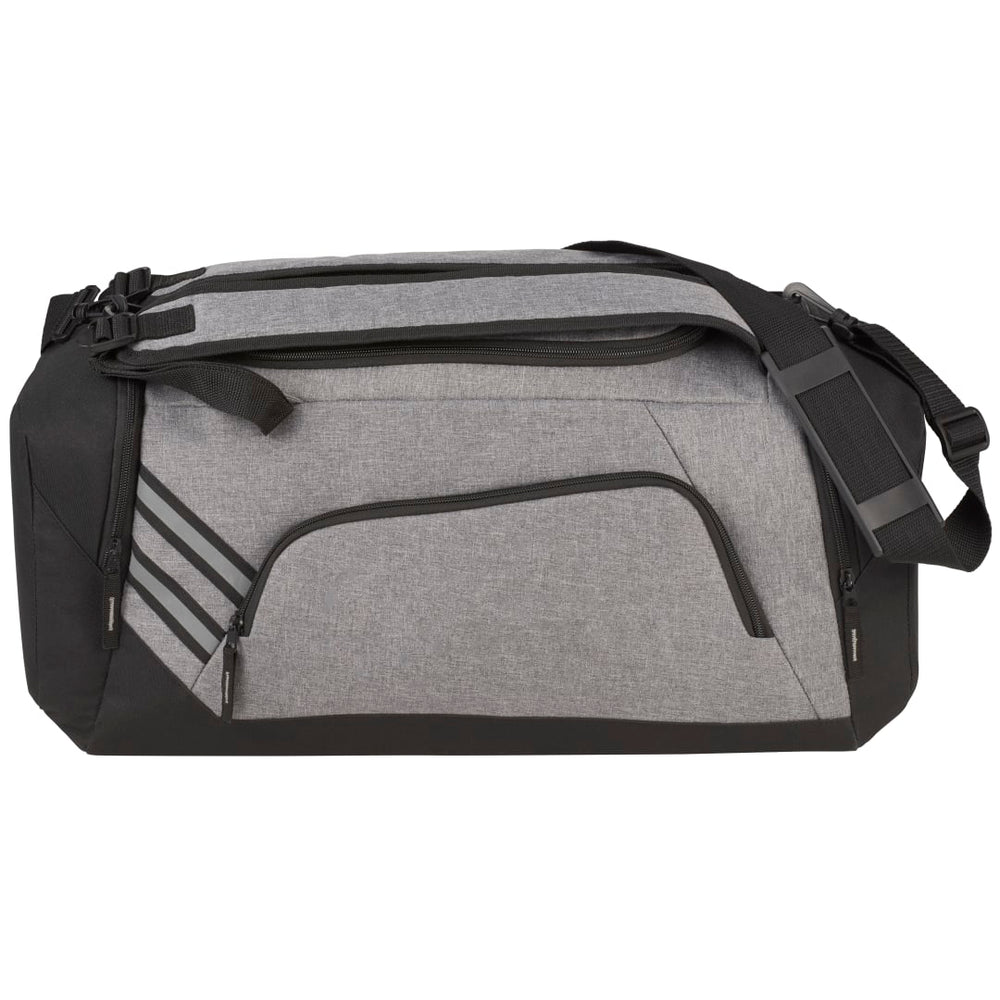The Sebring Convertible Graphite Duffel gives you the best of both worlds - a duffel AND a backpack. This sporty convertible duffel features a roomy zippered main compartment, one side zippered pocket, reflective accents, a side zippered shoe pocket, and a front zippered pocket. The back includes a large mesh water bottle pocket.